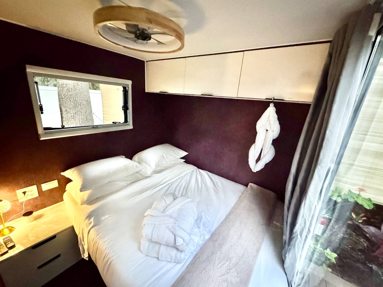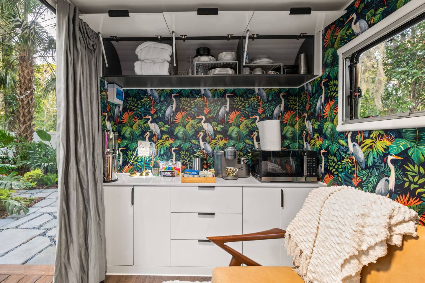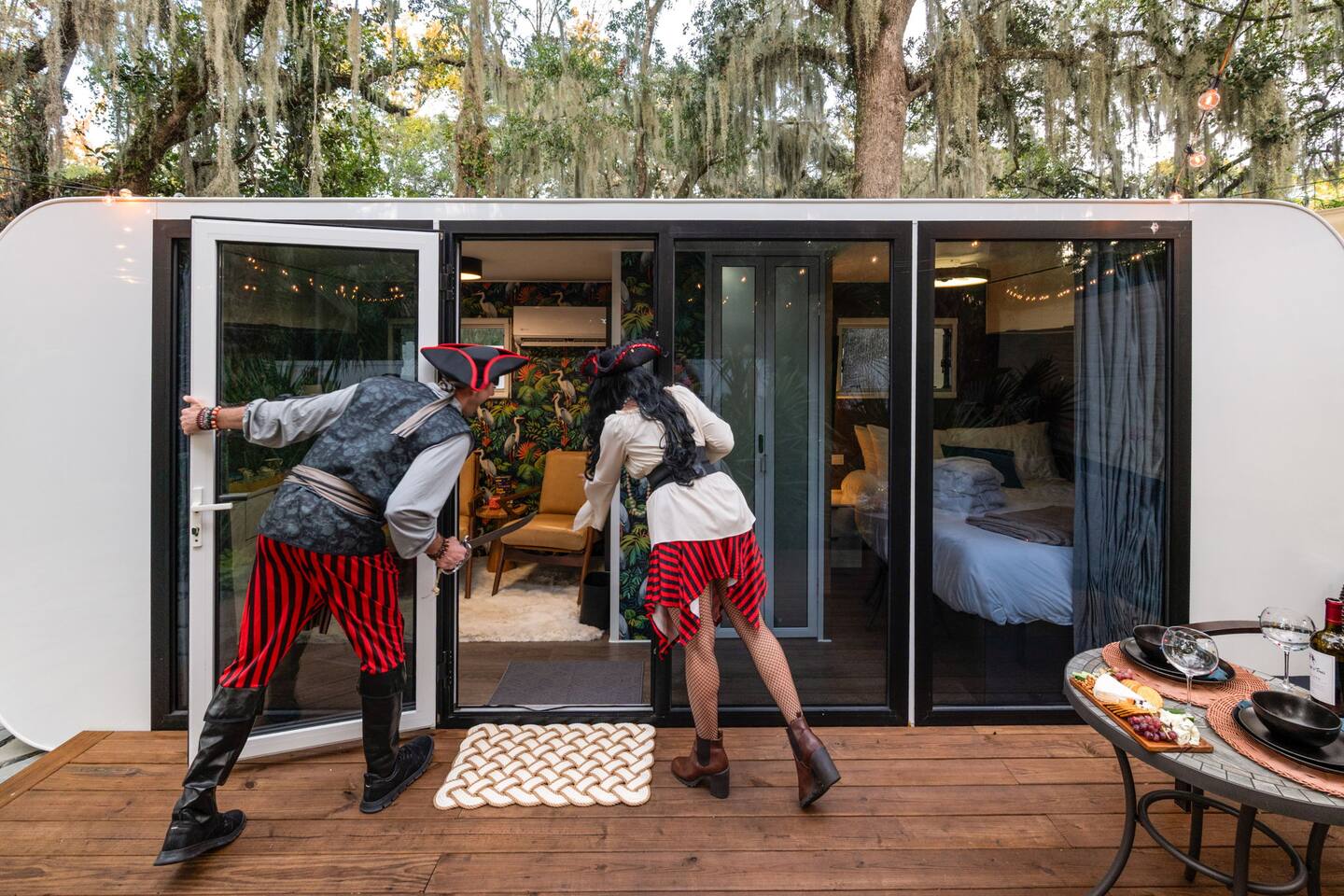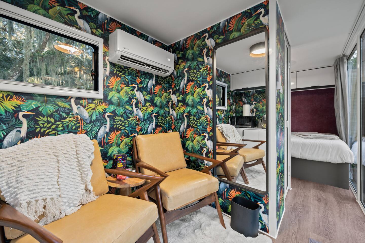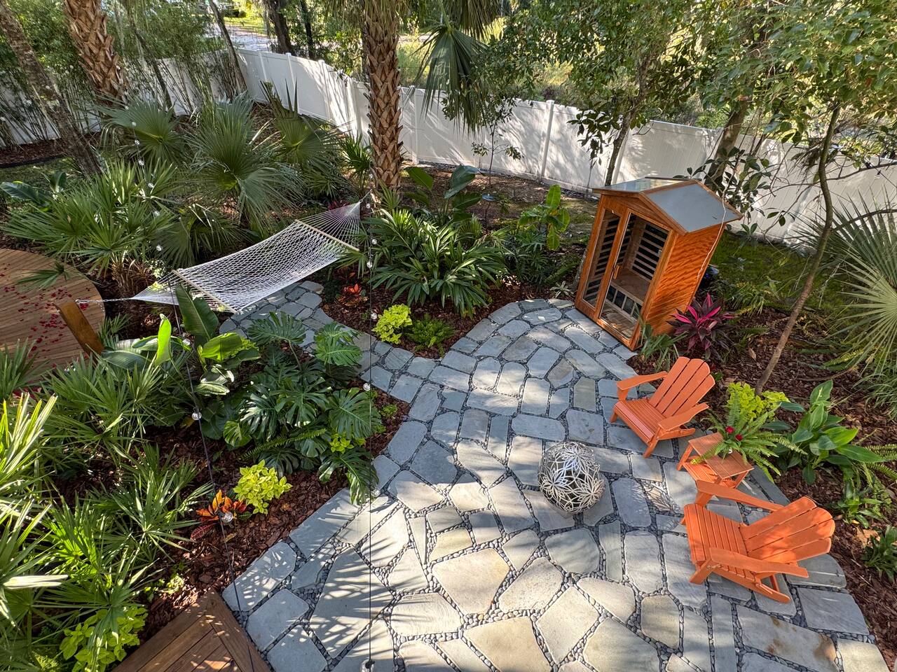✨ The Experience Immerse yourself in romance and relaxation beneath the stars. Enjoy two oversized outdoor soaking tubs, perfect for a hot soak or invigorating cold plunge—enhanced by a professional icemaker for wellness enthusiasts. Unwind in the private infrared sauna featuring mood lighting and a built-in sound system, or cozy up by the outdoor fire pit with a glass of wine. 🌹Deluxe Rose Package (Optional Upgrade) Please note that the rose petals and romantic rose setup you may have seen in photos or videos are not included with the nightly rate. If you’d like to elevate your stay with our Deluxe Rose Package, just let us know! We’ll be happy to add it to your reservation. Every detail is designed for connection and serenity—from plush Turkish cotton robes to romantic string lights illuminating the tropical garden. 🛏️ Inside Your Tiny Luxury Retreat Step into a beautifully designed modern interior featuring: • A cozy queen bed with luxury linens • Smart TV & Wi-Fi for streaming your favorite shows • Fully equipped kitchenette with coffee, tea, and snacks 💞 Perfect For • Romantic getaways & anniversaries • Newlyweds seeking privacy and luxury • Wellness-focused couples looking to recharge • Special occasion surprises or weekend escapes 🔑 Highlights • Two outdoor soaking tubs for hot or cold therapy • Private sauna with lights & sound system • Outdoor fire pit, hammock, & café table • Plush Turkish cotton robes for spa-like comfort • Romantic lighting & tropical garden setting • 8 minutes to Downtown St. Augustine 🍳 Your Culinary Setup: Indoor Kitchenette & Outdoor Grill You’ll have two convenient areas to accommodate all your culinary needs during your stay in Saint Augustine! The Indoor Kitchenette Our cozy indoor kitchenette is fully equipped for quick meals, snacks, and gourmet coffee. It features an all-in-one appliance: a powerful microwave/air fryer/oven that can air fry a side dish, or perfectly toast up a mean bagel. ☕️Coffee lovers, rejoice! We provide a Keurig K-Café complete with a handy milk foamer for specialty lattes and cappuccinos. Quickly heat water with the electric kettle for tea. You’ll find a selection of glassware for every comfort: cozy glass mugs for your hot drinks, sleek stainless steel glasses for water or cocktails, and elegant glass wine glasses. Best of all, we provide a Berkey water filter to ensure you always have pure, crisp drinking water on hand. The Outdoor Grilling Lounge When it's time to take the flavor outside, step out to our dedicated outdoor cooking space. It features a versatile grill with a flat griddle and a side burner—ideal for cooking up a delicious breakfast or grilling a truly perfect, juicy steak. An adjacent outdoor sink makes clean-up a breeze, and storage is provided underneath for essential pots and pans. 🚿 The Clever & Compact Wet Bath In keeping with our tiny home design, you’ll find our bathroom is a clever, space-saving wet bath—a fantastic feature for maximizing space! • Smart Design: The shower and toilet share the same waterproof pan, meaning the entire area is designed to get wet when the shower is in use. This highly efficient layout eliminates the need for a bulky separate shower stall. • Complete Amenities: The room is equipped with a modern toilet, plus a small vanity sink and mirror that are kept separate from the main shower pan area. • Heads Up: Everything inside the shower pan area will get wet when you shower! We provide a hook right outside the door for your dry towels. We love the efficiency of this unique, compact design, and we think you will too—it’s a perfect example of smart tiny living! 🌴 Location Nestled in a peaceful nature area just minutes from downtown St. Augustine, Jungle Oasis offers the best of both worlds—secluded relaxation and easy access to fine dining, beaches, and the city’s romantic charm. Book your stay at Jungle Oasis and rediscover romance in a luxurious, tropical paradise designed just for two. 💫