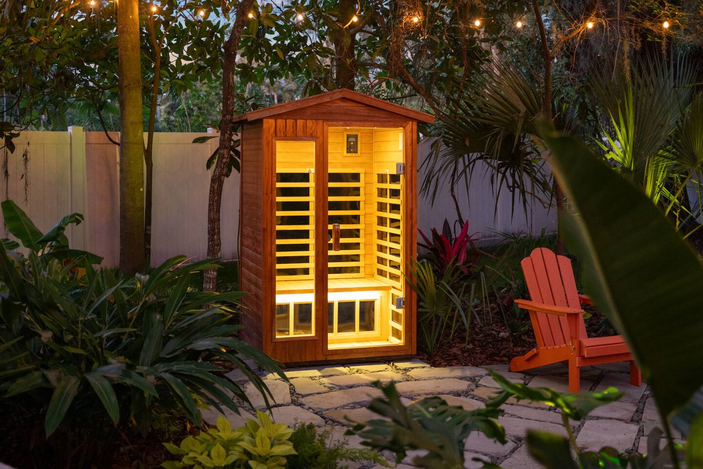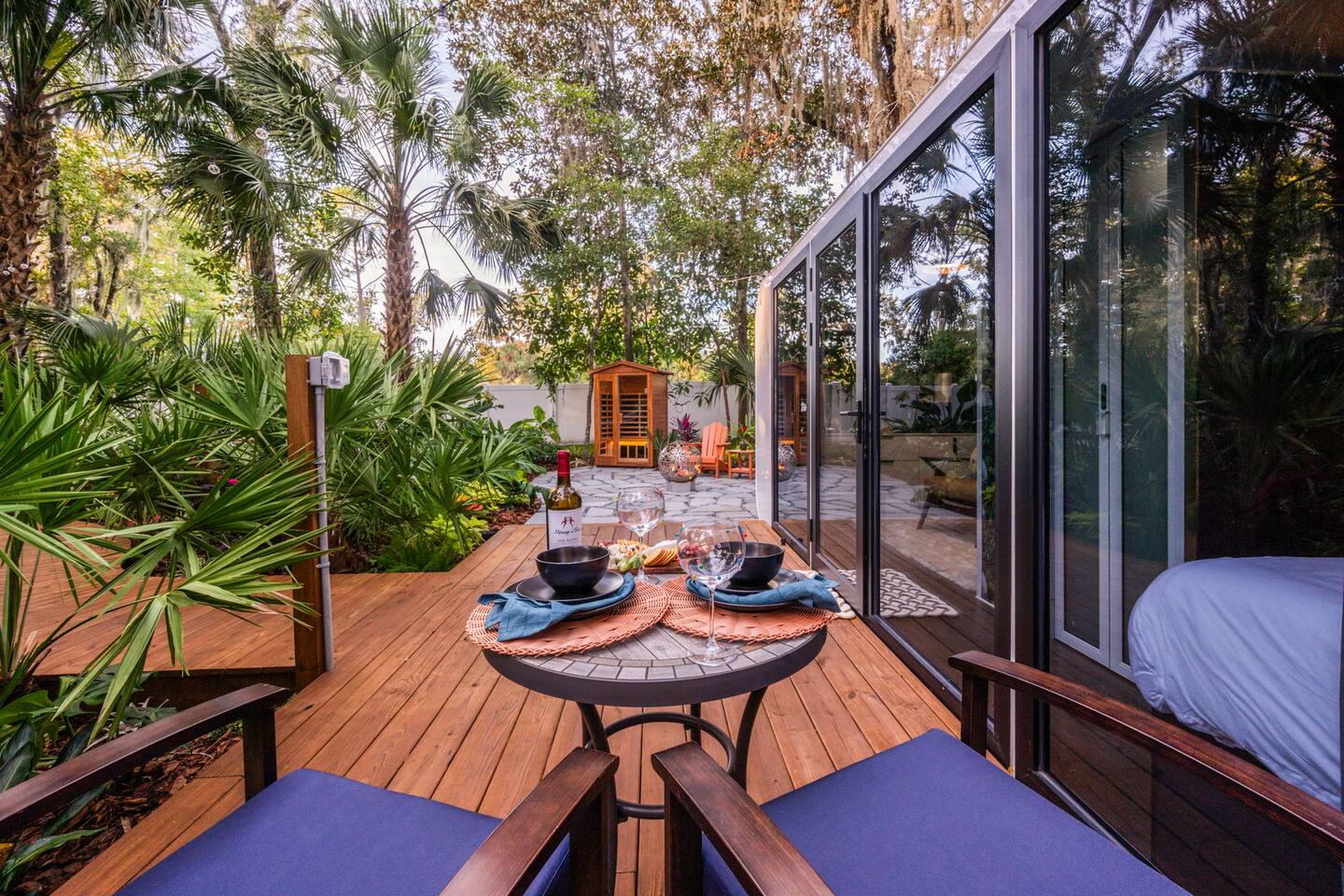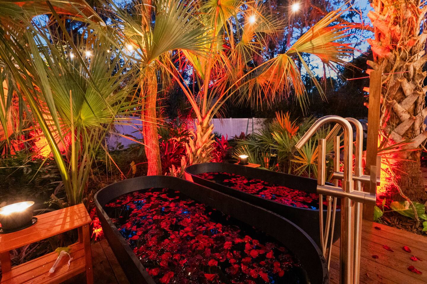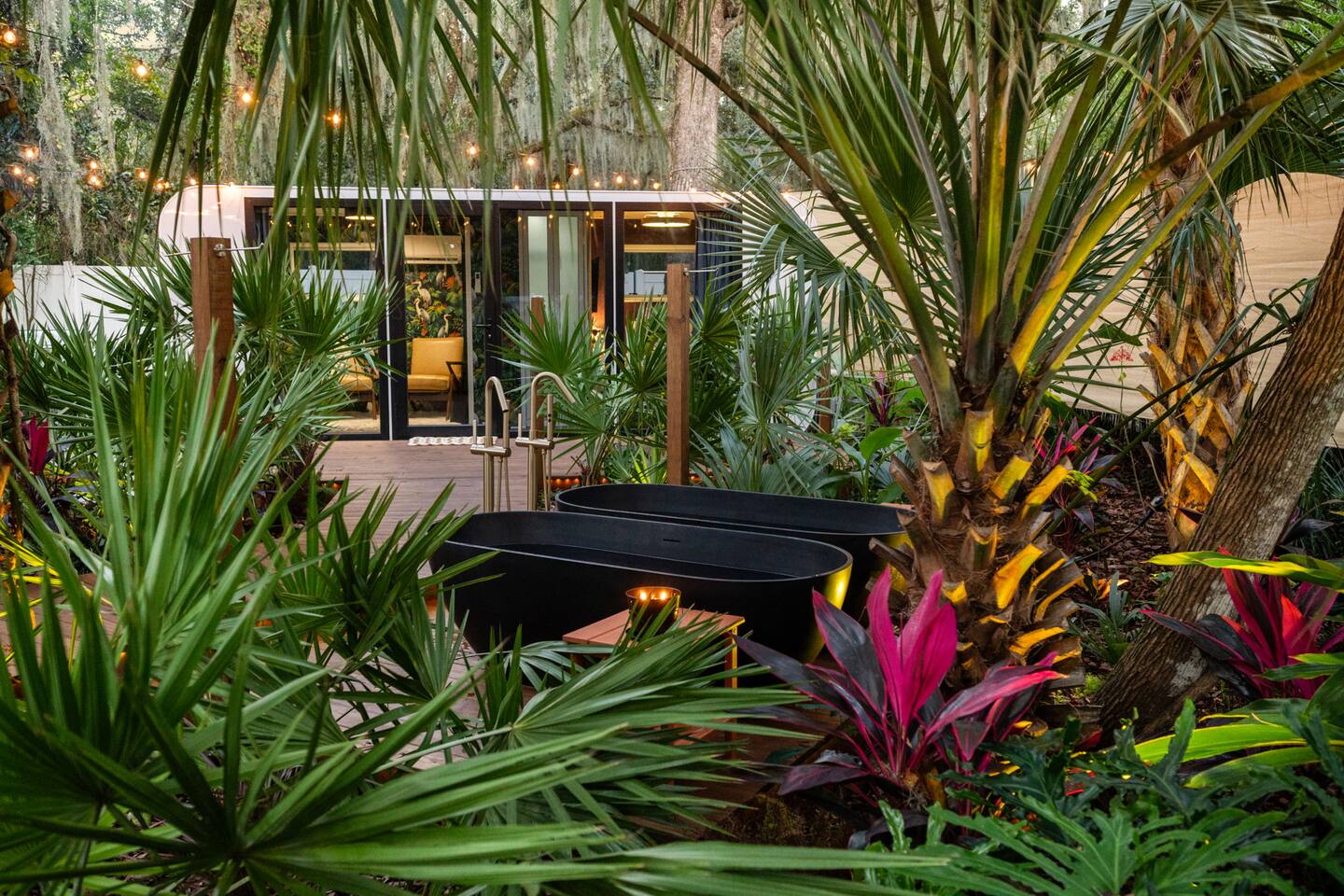 🌿 Jungle Oasis – Romantic Tiny Home Retreat with Sauna & Soaking Tubs Escape to Jungle Oasis, a one-of-a-kind romantic getaway in St. Augustine, Florida, where luxury meets tranquility. Just 8 minutes from historic downtown, this Tiny Home wellness retreat is surrounded by lush tropical landscaping and glowing ambient lights, creating an unforgettable, private sanctuary for two.✨ Upgrade to our Deluxe Rose Package🌹 if you’d like a romantic custom rose experience.
